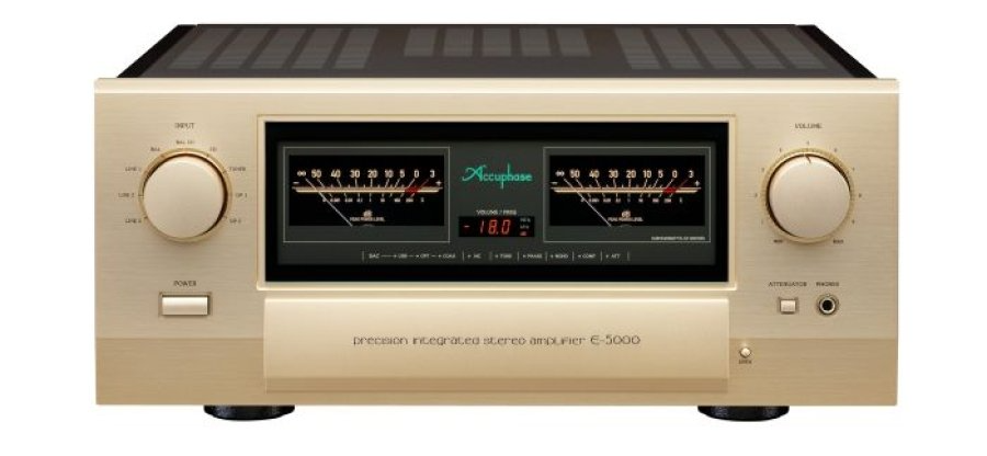 Der Accuphase E-5000 wurde anlässlich des 50. Firmenjubiläums als Highlight einer neuen Vollverstärker-Leistungsklasse entwickelt. Dieser potente Verstärker erreicht eine sehr hohe Ausgangsleistung von 240 Watt an 8 Ohm und 320 Watt an 4 Ohm (pro Kanal). Die schiere Kraft des E-5000 und sein enormer Dämpfungsfaktor von 1.000 (garantiert) machen ihn zum perfekten Spielpartner grade auch für leistungshungrige Lautsprecher! Seine großen Instrumentations – Leistungsverstärkerstufen wurden auf hocheffizienten Kühlkörpern montiert und nutzen Leistungstransistoren in fünffach paralleler Gegentaktschaltung im Klasse-AB-Betrieb.